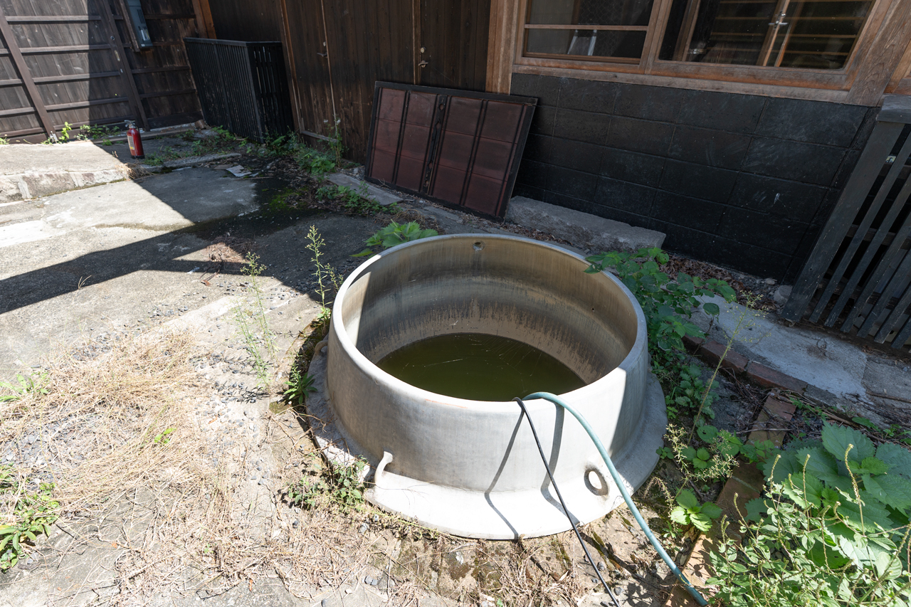 蒸留に利用されていた水場は庭池として利用されています。仲良しの鯉が2匹住んでいます。