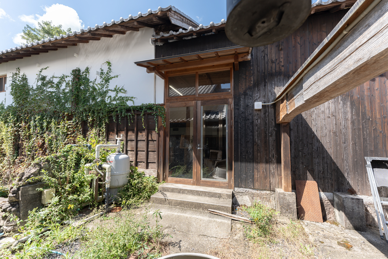 正面の縁側横にある入口は、商売をされていた古民家によく見られる間口になっています。お客様用の玄関や、販売所として利用されていたのかもしれません。