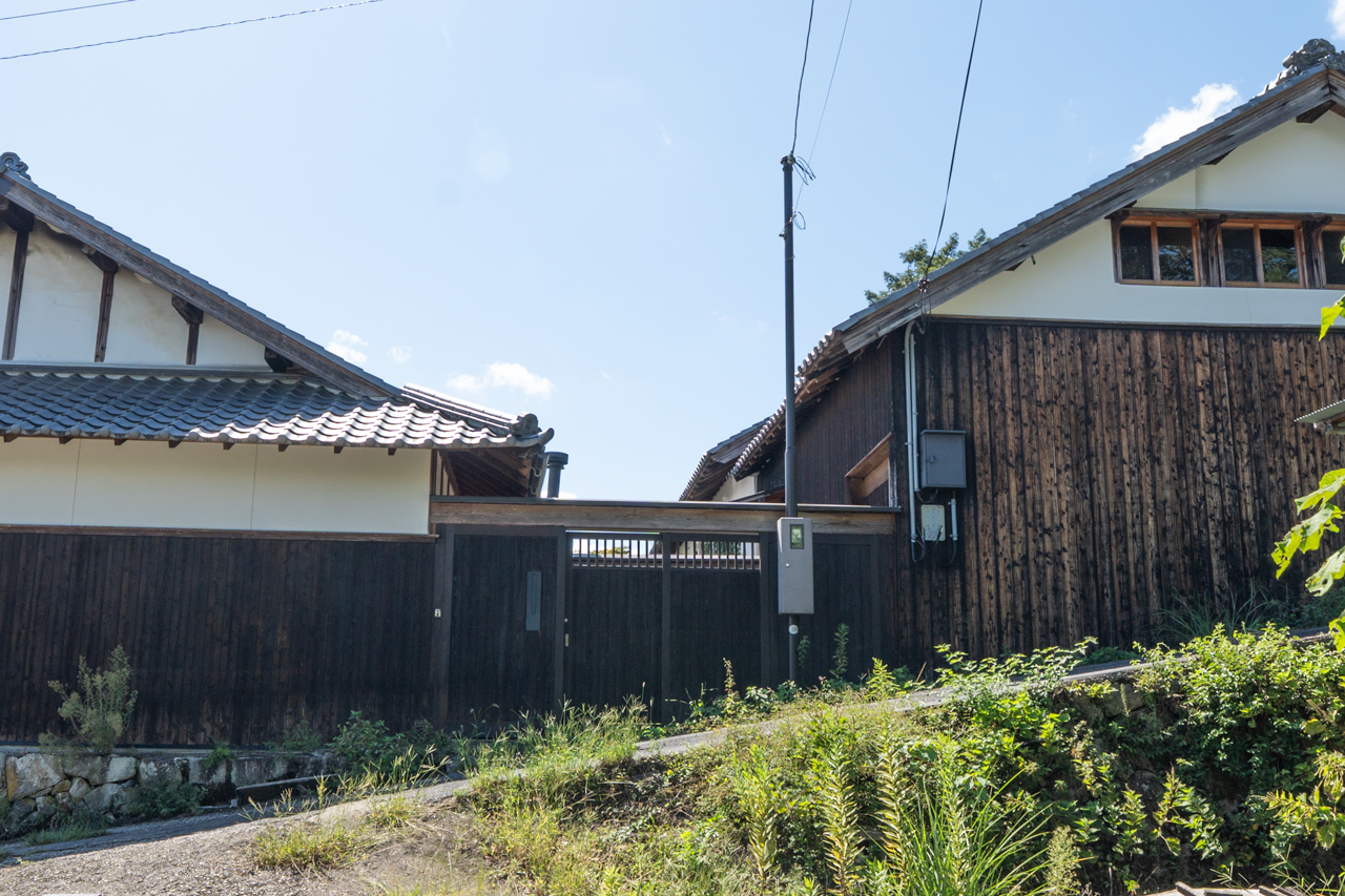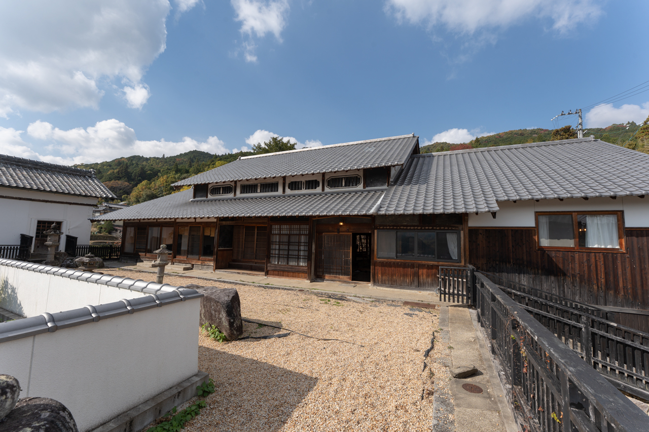 長閑な空気と紅葉のトンネル、秋の河川に反射する光。11月取材に訪れた奈良県山辺郡山添村は紅葉の見ごろを迎えていました。奈良県と三重県のちょうど県境に位置する自然豊かなディープエリア。清らかな水脈と緑の山並みが織りなす気持ちの良い景観を眺めながら現地へ向かいます。奈良市・桜井市からはおよそ1時間、大阪からは西名阪自動車道を利用して約70分。山添インターチェンジからは、ほぼ舗装された広めの道路を通るので快適に現地へ向かう事ができます。坂道をのぼると見えてくる、砦のように建つ立派な蔵には今も残る家紋。古民家や伝統建築がお好きな方なら思わず胸が高鳴るような印象的な景観と佇まいです。
