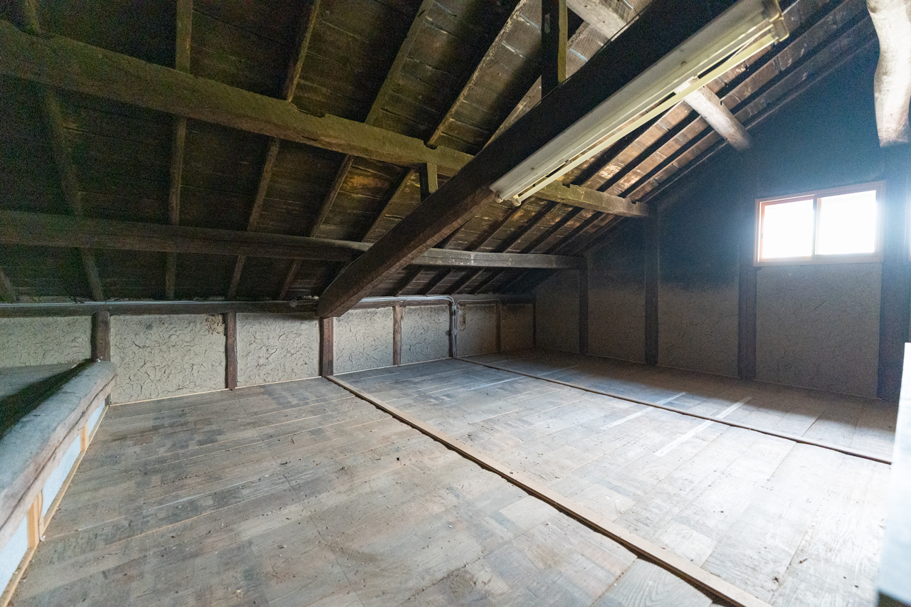 離れにも屋根裏スペースが設けられており、階段で上り下りできる仕様になっています。収納や物置として活用できる、便利な空間です。