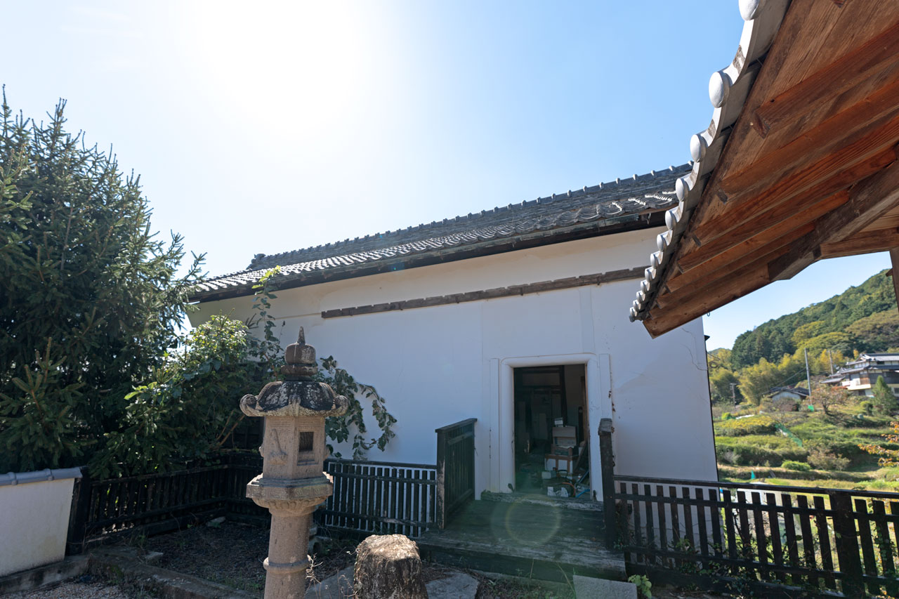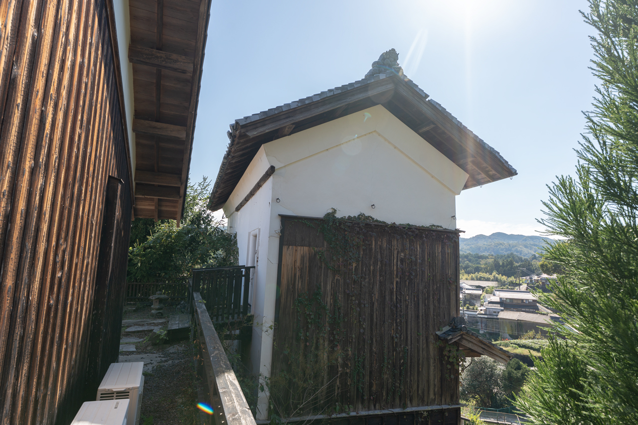 庭には百年以上前から佇む石灯籠があり、敷地を一段降りた場所には、金木犀、梅、椿、松、茶の木など、四季を彩る植栽が息づいています。一世紀以上にわたり、この地で山添の山並みを見つめてきた母屋と蔵。隣接してお庭も附属します。本格的な畑造りや菜園も可能です。