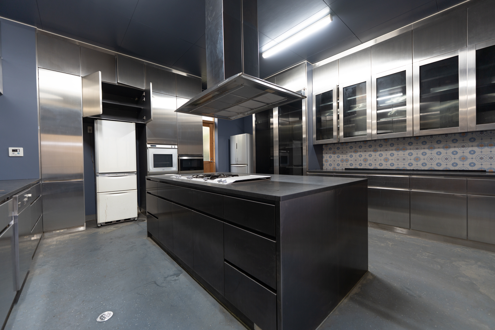 離れには、大ホールに隣接してキッチンホールが設けられています。このキッチンには、ドイツの高級キッチンメーカー 「GAGGENAU(ガゲナウ)」 のフル設備が設置されています。細部に至るまで非常に美しいつくりで、デザイン性と機能性を兼ね備えた上質な空間です。 本格的な調理を楽しみたい方にとっても、魅力的なキッチンエリアとなっています。