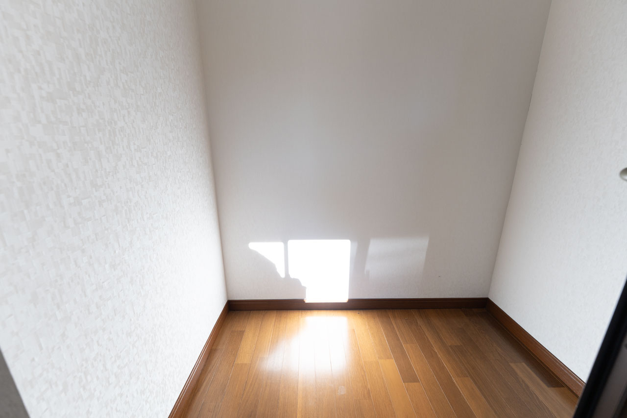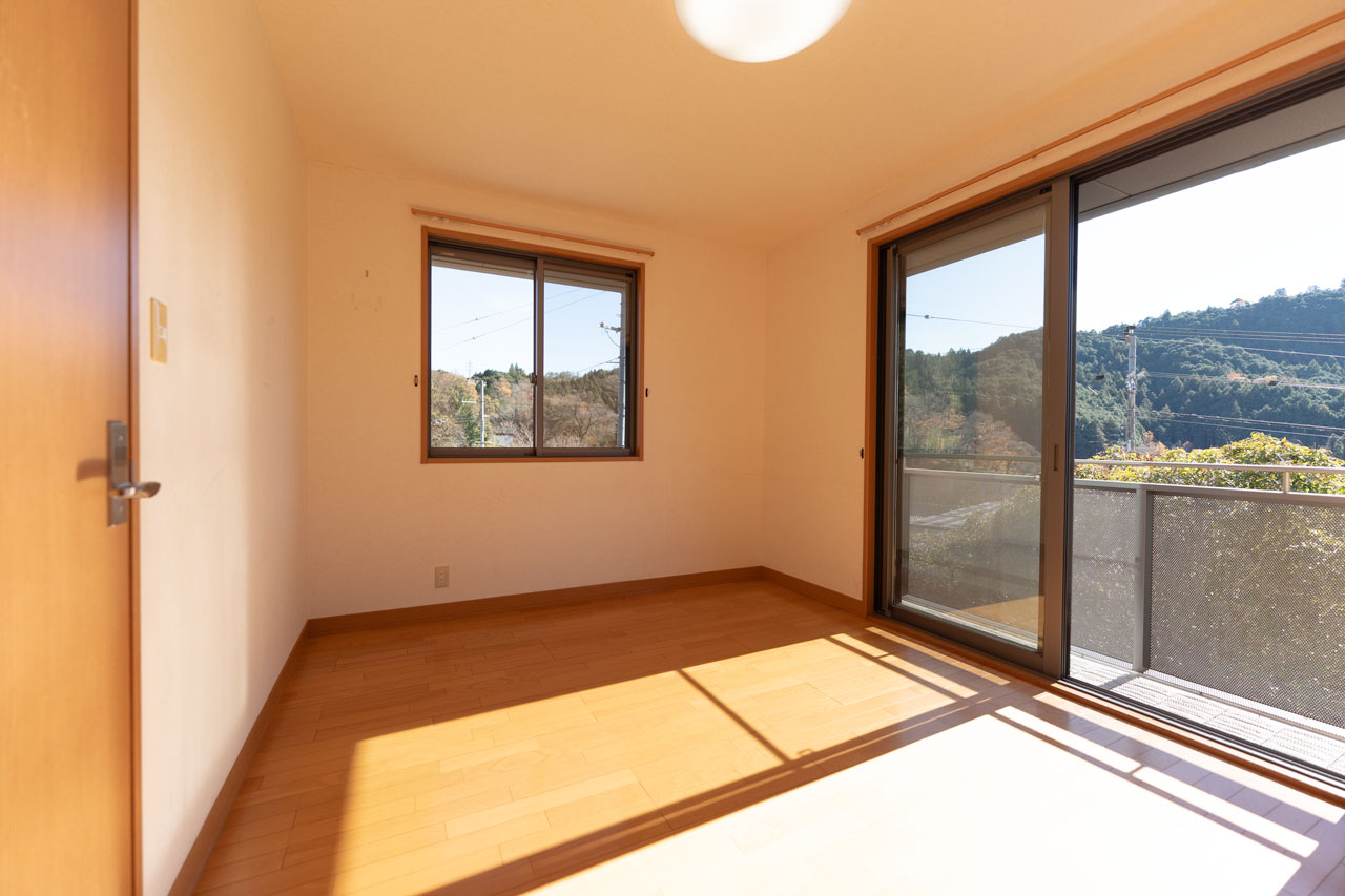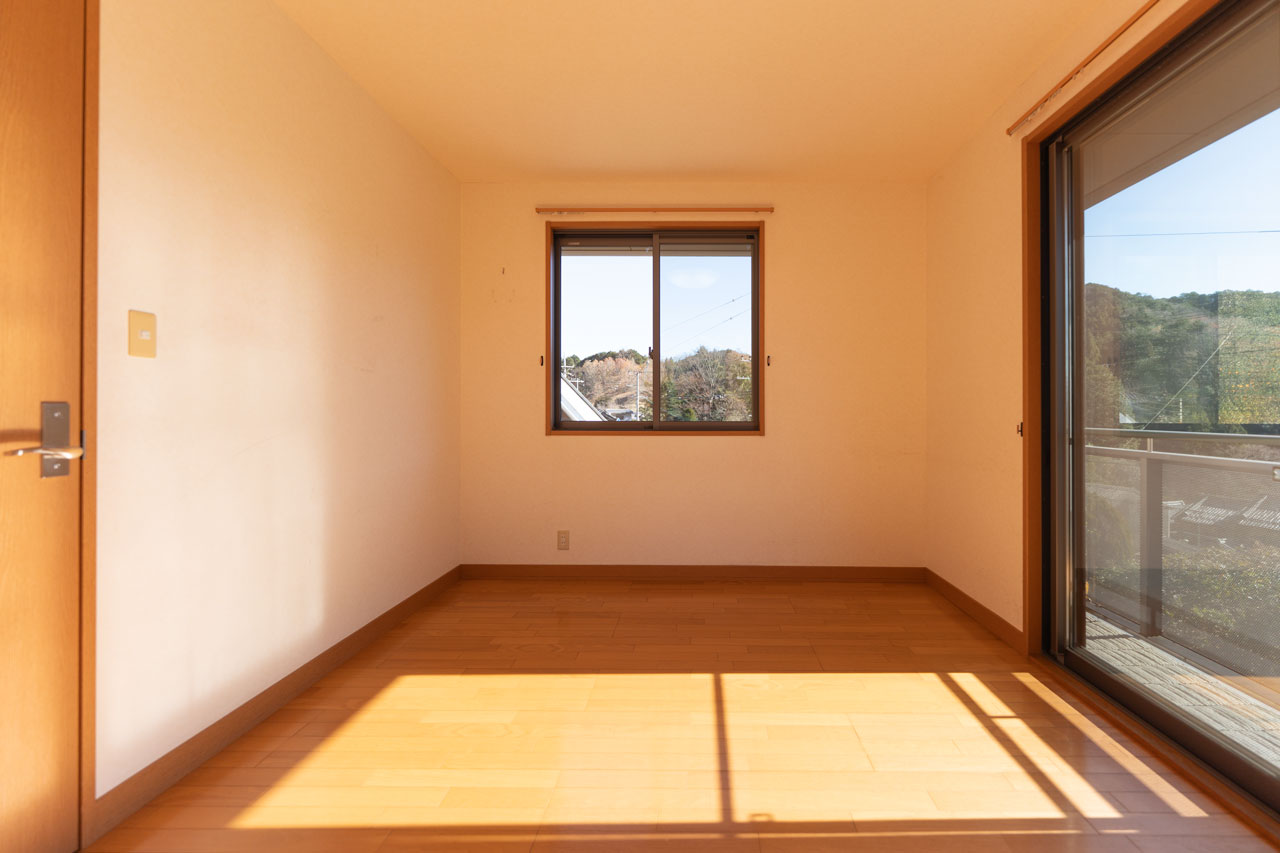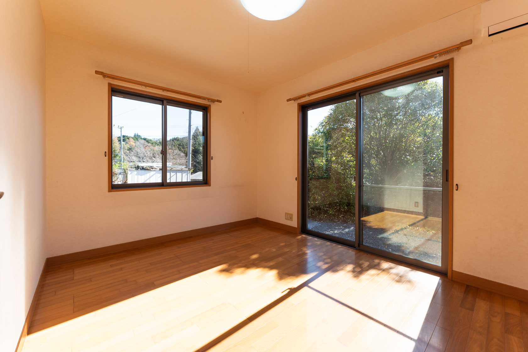 2階は約9帖の広々とした板間があります。こちらは物置としても活用できます。お部屋は洋室2室と和室2室があります。和室は特に南向きで日当たりの良いお部屋です。